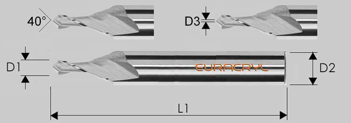 Fresa de mango metal duro para grabar en calidad trabslucida. Para procesar superficies Metacrilato (PMMA), policarbonato, y otros materiales plásticos así como metales ligeros. Con dos filos de corte espiralizados.